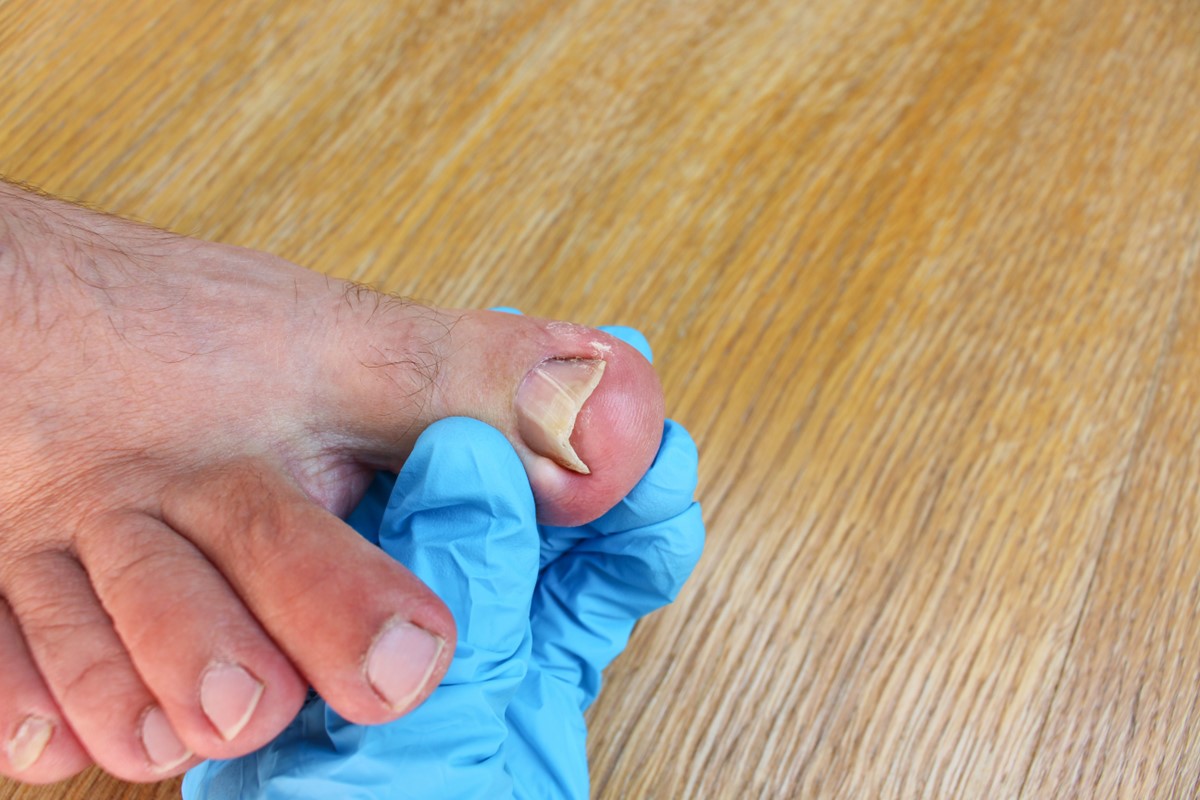 An ingrown toenail occurs when the edge or corner of a toenail grows into the surrounding skin instead of growing straight out. It is most common with the big toe but can affect any toe. Ingrown toenails can be painful and tender and cause redness or swelling in the affected area. When the ingrown toenail is left untreated or if the pain and tenderness worsen, it can lead to infection.